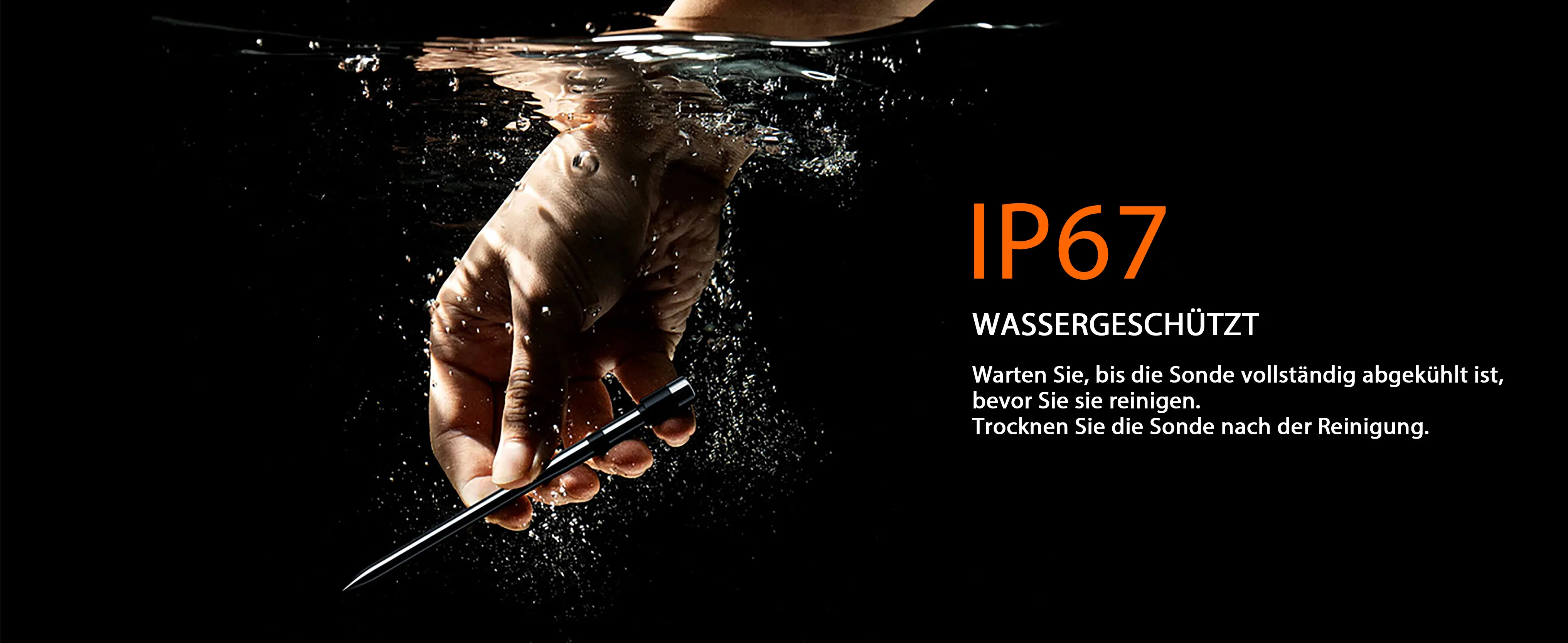 IP65 wasserdicht mit intelligentem Temperaturalarm, hitzebeständiger Sonde und präziser Temperaturmessung.